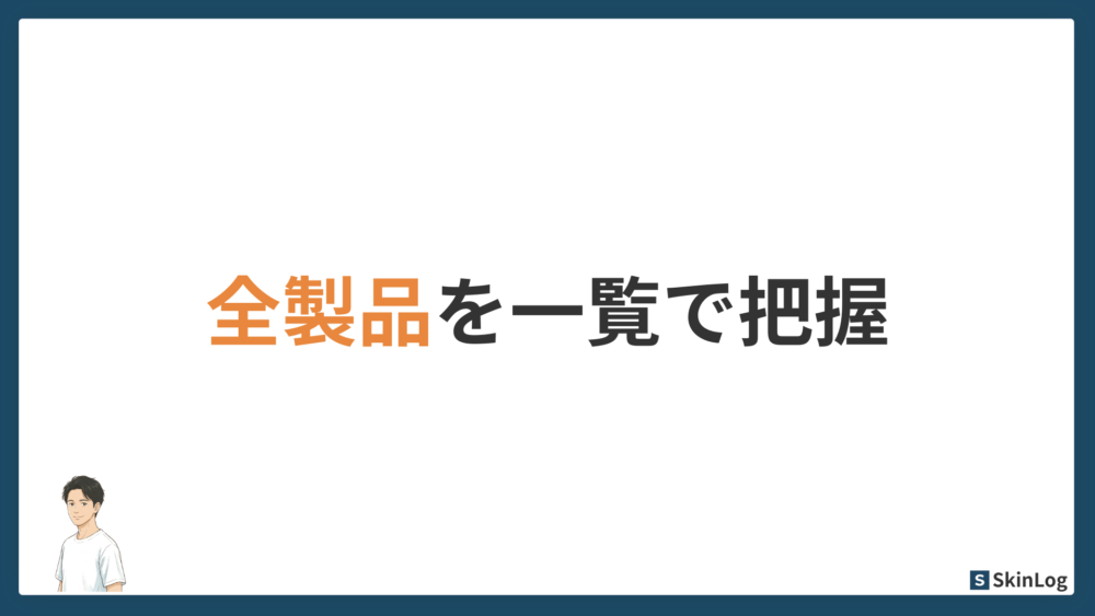まず全製品を一覧で把握しましょう。