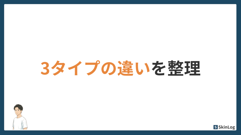 メンズオールインワンには、大きく分けて3つのタイプがあります。