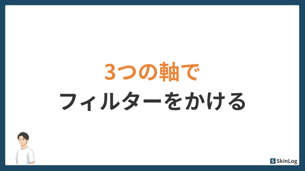 この3つの軸でフィルターをかけるだけで、ドラッグストアの棚で迷う時間が大幅に減ります。